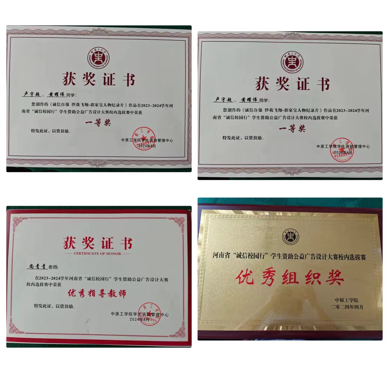 为深入学习贯彻习近平新时代中国特色社会主义思想,认真落实党的二十大关于“完善覆盖全学段学生资助体系”的重要决策部署,进一步发挥“资助育人”在立德树人根本任务中的关键作用,学校开展了河南省“诚信校园行”学生资助公益广告设计大赛校内选拔赛。经学生个人申报、学院初审推荐、学校专家评审等环节,校内选拔赛结果已经于4月12日公布。