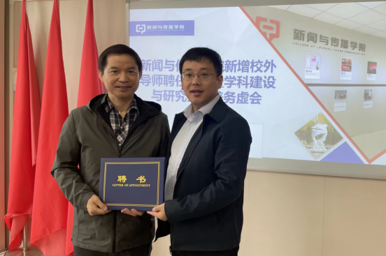 为了进一步提升学科建设水平,推动研究生教育高质量发展,5月10日上午,新闻与传播学院在3号组团楼B904会议室举行新增校外导师聘任仪式暨学科建设与研究生培养务虚会。会议紧扣高质量发展主题,坚持问题导向,聚焦目标任务,重点围绕学校更名河南电子科技大学背景下学科特色的凝练与培育、学科交叉融合、学位点建设、研究生培养开展研讨。