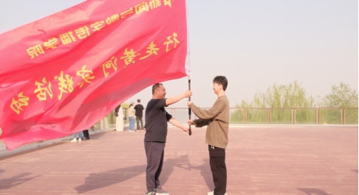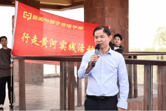 岳德军首先致辞,他回顾了黄河的重要历史事件,从秦国掘堤水淹大梁城到黄河流域综合治理规划,深入解读了黄河文化的历史意义与时代价值,鼓励学生运用专业知识和数字技术记录黄河变化。王东东对活动的顺利举办表示祝贺,介绍了当地在黄河战略推动下、依托黄河文化打造多个文旅项目,有力促进了区域发展。杨静表示,此次活动是学院深化‘新文科’育人理念的重要实践,也是推动黄河文化创新传播的再出发,鼓励师生肩负传承创新黄河文化的使命,运用新技术讲好黄河故事,并对同学们提出扎根人民、践行“四力”、守正创新展现文化魅力、知行合一提升专业素养的要求和期待。随后,刘念将象征着责任与使命的旗帜授予学生代表,主持人宣布活动正式启动。