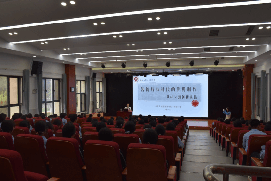 的发展规划、办学实力、特色专业、教学成果等内容。蒋东升以《智能媒体时代的影视制作》为题作了科普讲座,结合人工智能时代背景、具体案例,讲授了AIGC在影视创作中的应用,激发现场学生对人工智能融入影视制作的强烈兴趣。