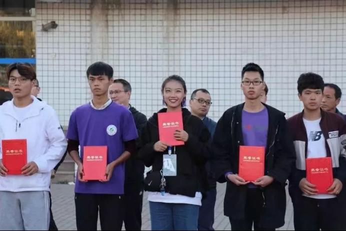队伍在欢呼呐喊声中,如一支离弦之箭,步伐整齐、口号响亮地冲向目的地,以14秒48的优异成绩完成了此次比赛。