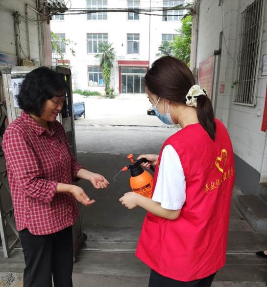 “本社区安全监测点志愿者太少,请求支援。”当看到这条信息时,编导204班栗媛媛在驻马店市天顺路健康社区毫不犹豫报了名。8月5日经过短暂培训后,她立刻上岗,每天早上七点集结在社区卡口劝返点,登记过往车辆信息、测量人员体温并记录数据,给道路、广场等喷洒消毒液,对行人进行酒精消毒、发放口罩。“您好,请熄火”、“帮你测下体温,体温正常,感谢配合”成了她每天说的最多的一句话。