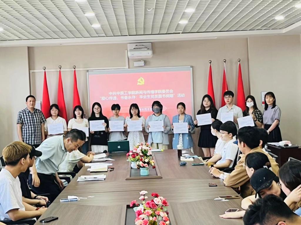 最后,崔涛和马肖华为开展“爱心传递,书香永存:毕业生党员图书捐赠活动” 的毕业生党员颁发了荣誉证书。