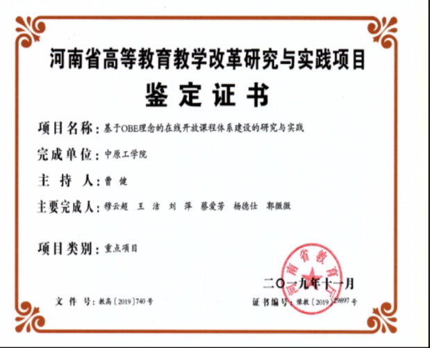 5.省级教学质量工程项目(河南省高等教育教学改革重点项目鉴定证书)