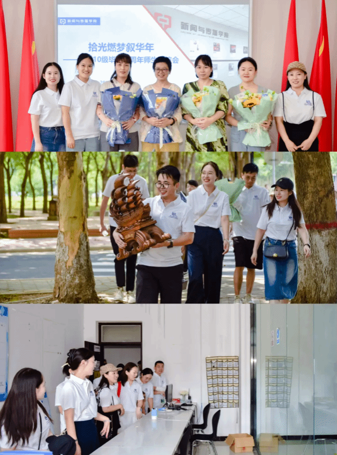 广播电视新闻学2014届校友,于毕业十周年之际重返母校,以“拾光燃梦叙华年”为主题,再叙师生情谊,重温同窗岁月。学院党委副书记马肖华、辅导员尚青青与部分教师代表参与活动并出席座谈会。活动由14届校友王煜枫主持。图片